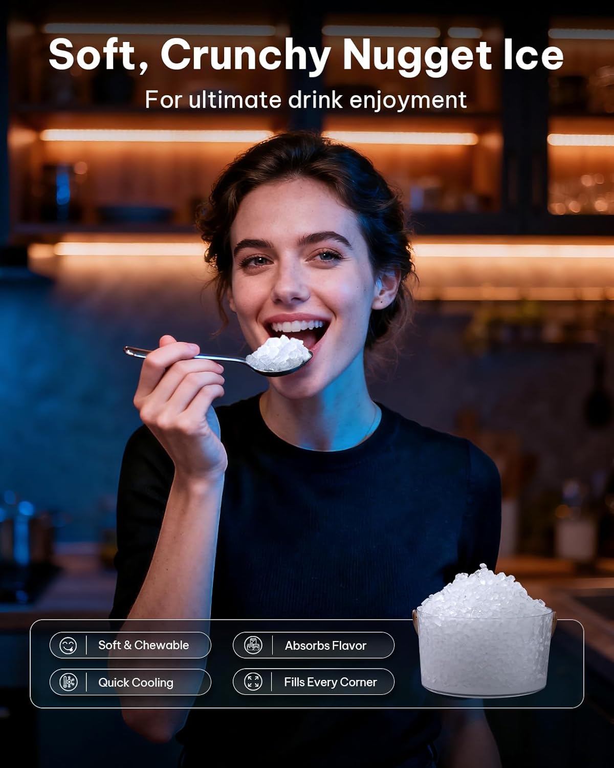 Soft, Chewable Ice You’ll Love: Our ice machine produces enjoyable, crunchy nugget ice that’s gentle on your teeth. It’s perfect for cooling your drinks and enhancing their flavor, like cocktails, lemonade, soda, iced coffee, and more. It’s also an excellent way to keep seafood cool and fresh.